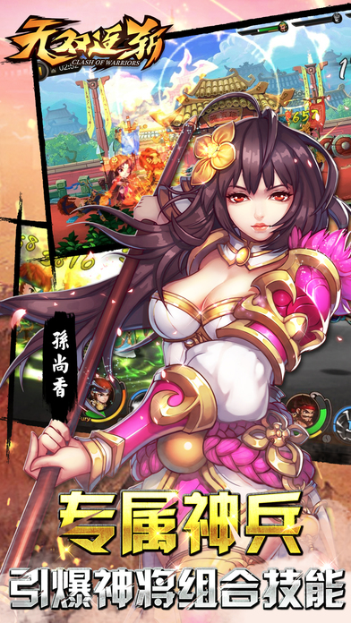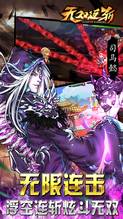 《无双连斩》是一款以架空三国历史为背景的萌趣手游,游戏汇聚了众多三国神将,以“浮空连斩”的炫技操作、千人同屏的无敌畅快PK体验、个性十足的神兵时装等丰富多样的内容与玩法,打破了传统卡牌的单调,带给玩家独特的游戏享受!