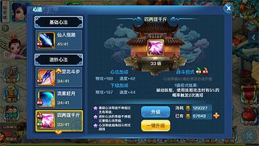 玩家可通过修炼心法(战斗技能),不断提升自己的战斗实力。游戏中,可修炼的最高心法等级与角色等级相同,角色等级愈高,心法等级亦可随之提升。提升心法需消耗一定的阅历,而所需阅历可通过任务、副本、活动等多种途径获得。