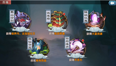 玩法规则:日常副本分为经验副本、突破丹、装备精炼石、铜钱、饰品经验章、饰品附灵石。