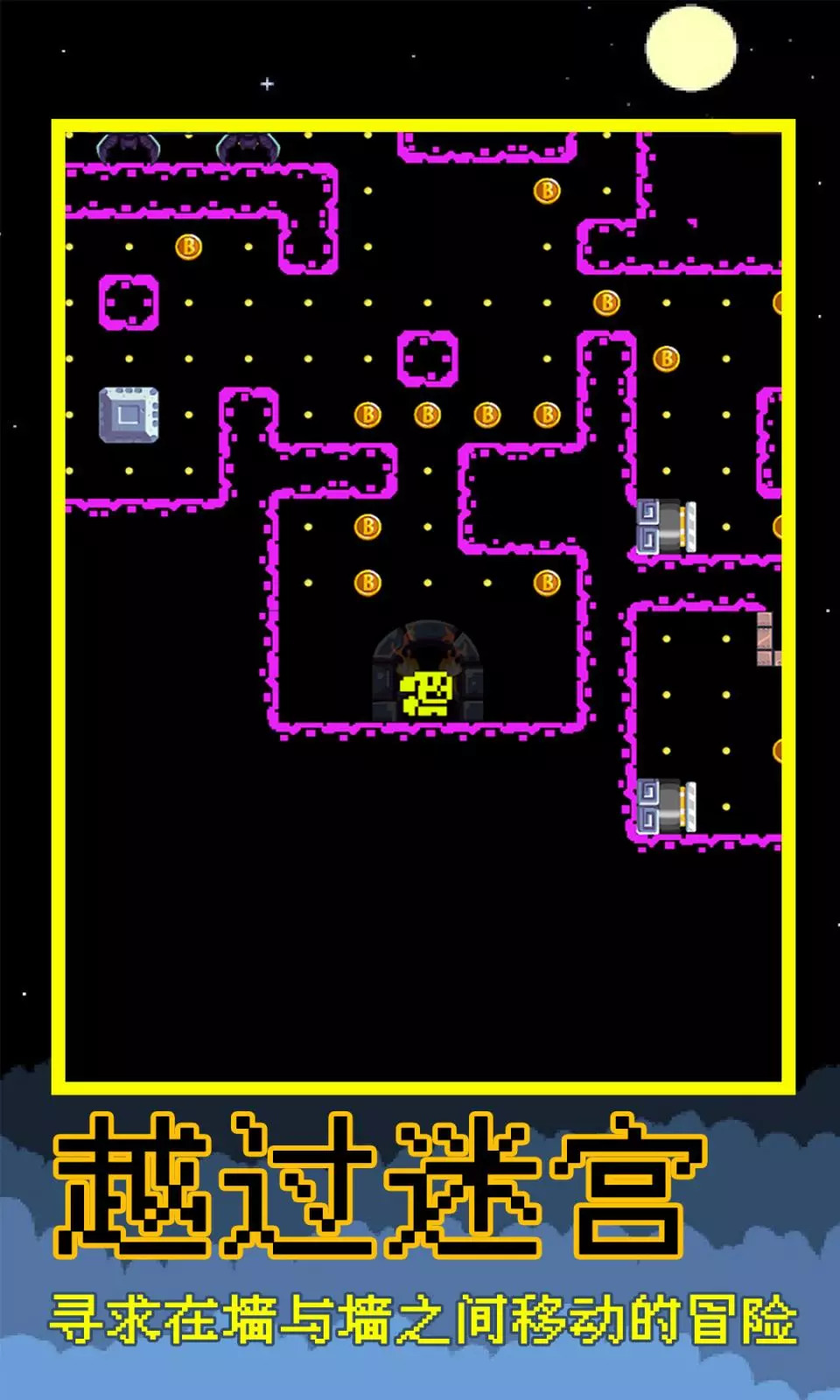 彩虹吃豆人是一款充满霓虹色彩的像素风格游戏,开启你的奇幻冒险之旅,从一面墙壁跃至另一面。征服迷宫的每一个角落,收集闪烁的硬币与璀璨的宝石,揭开那神秘坟墓面具的秘密,向下一个迷宫进发。