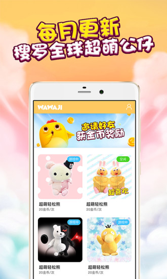 首次登录即可获得金币,尽情体验在线抓娃娃的乐趣!邀请好友同乐,更有丰厚的金币奖励等你来拿。