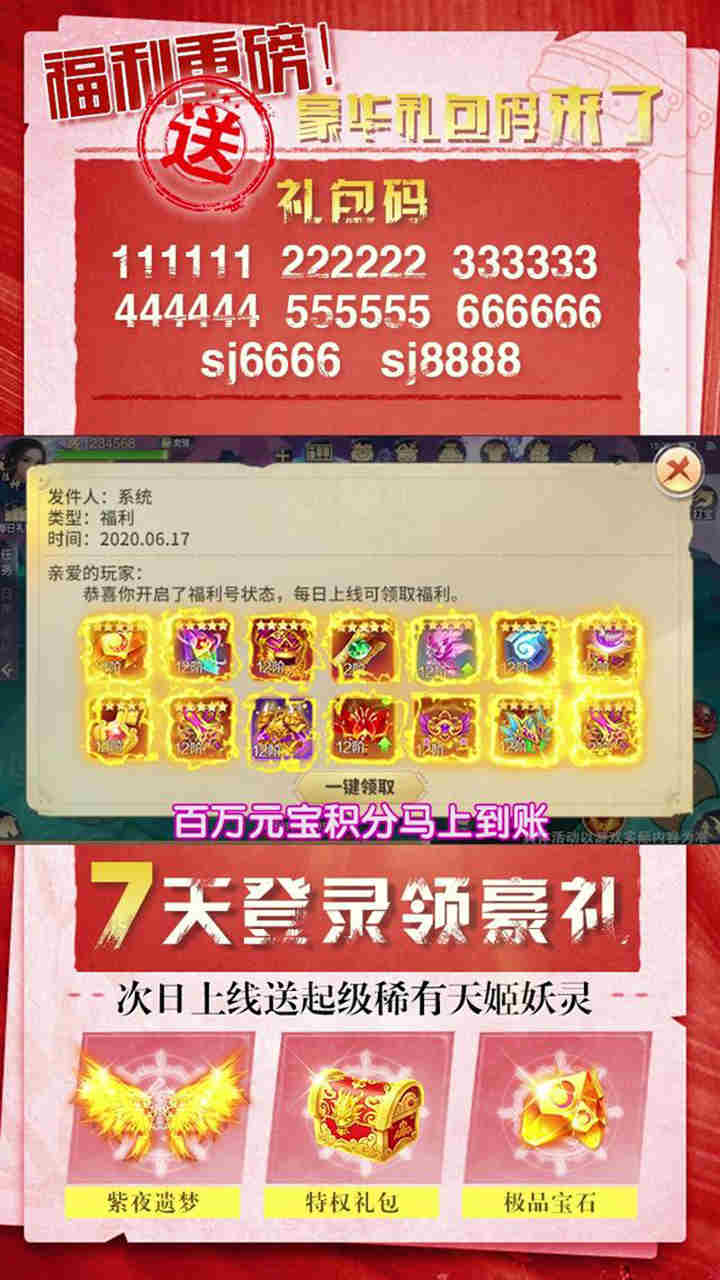 3、登录即送专属天姬,百妖手游恭候妖主大人的光临!