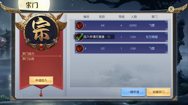 温馨提示:仙与魔各有其宗门,如果你的伙伴是仙而你是魔,你们将无法加入同一个宗门哦!
