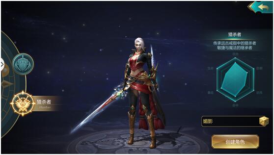 女性职业——猎杀者。传承自远古戒指中的猎杀者,她是敏捷与力量的化身。个体属性侧重于攻击、暴击和命中,是一位血量较低但攻击力极高的敏捷女战士。灵巧的双匕首,华丽的身法,轻松间便能收割敌人的生命,宛如戒灵大陆上一朵娇艳欲滴的血色玫瑰。