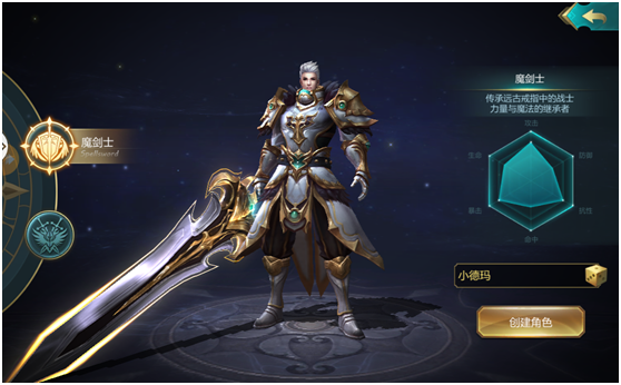 男性角色——战士,承载着远古戒指的传承。个体属性偏向攻击、暴击,同时兼顾生命与抗性。他是一位攻防兼备的均衡类男战士。手握狂暴的大剑,勇往直前的气魄,令一切敌人心生畏惧,犹如戒灵大陆家喻户晓的骑士荣耀。