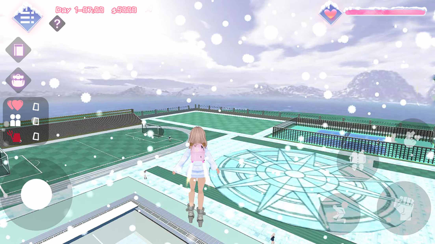 5、《高校模拟器2-冬日恋爱》是一款模拟真实校园生活的游戏,在操场的雪地中,与学长亲密互动,为冬季校园增添一丝暖意,开启全新的冬季樱花校园篇章吧~