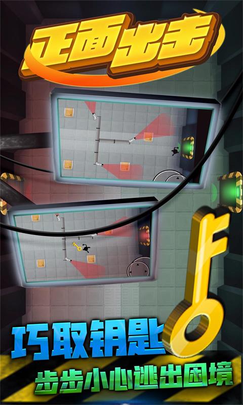 迎接挑战,这款休闲逃脱小游戏将带领玩家帮助火柴人寻找合理的射击路线以获取钥匙。务必小心躲避灯光的照射,一旦被照射便会以失败告终。全新的密室解谜地图正在等待着你,快来试试你的勇气与智慧吧。