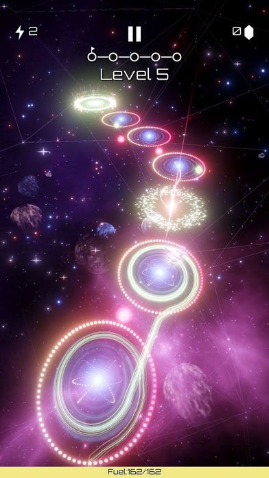外太空既美丽又神秘,然而其中危机四伏。飞行器需把握时机,迅速到达下一个星球,以免在燃料耗尽或坠毁之前失去机会,有时还需小心躲避障碍。技巧与运气,缺一不可。