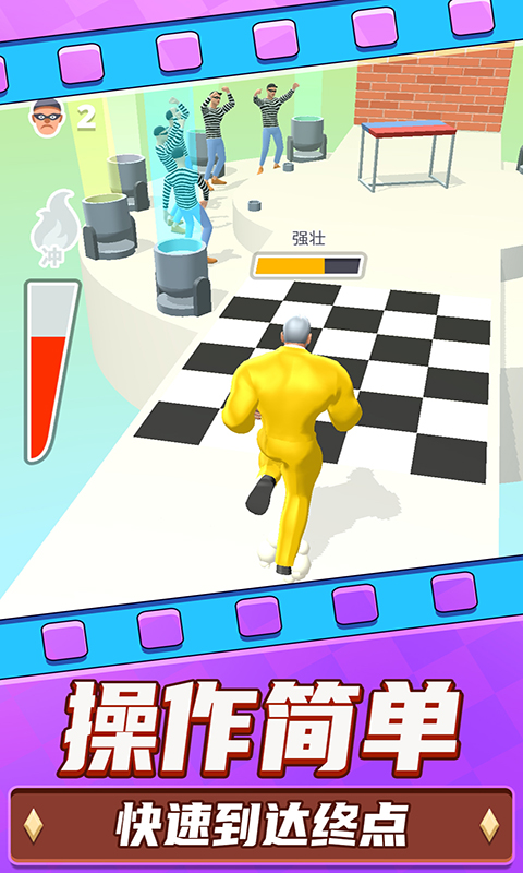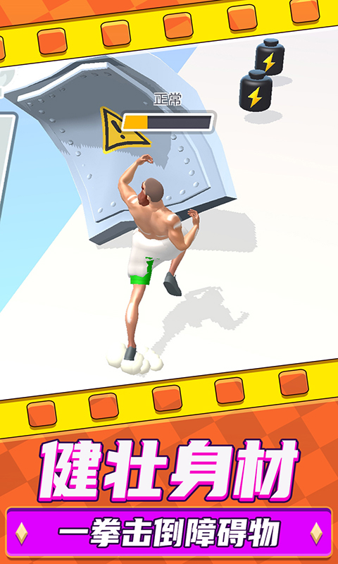 这是一款3D游戏,主角是一位肌肉男,他将在赛道上不断收集电池。收集到的电池能量越多,他的肌肉力量也会愈发强大,甚至能够打穿多层墙壁。唯有打破这些障碍,才能继续在游戏中前行,拼尽全力,迎接更多的挑战。