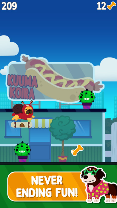 借助滑板,汪星人们变得愈加灵活,它们需要巧妙地躲避沿途的仙人掌,同时收集汪星人最爱的骨头,以解锁更多图案精美的滑板或其他可爱的汪星人种类。