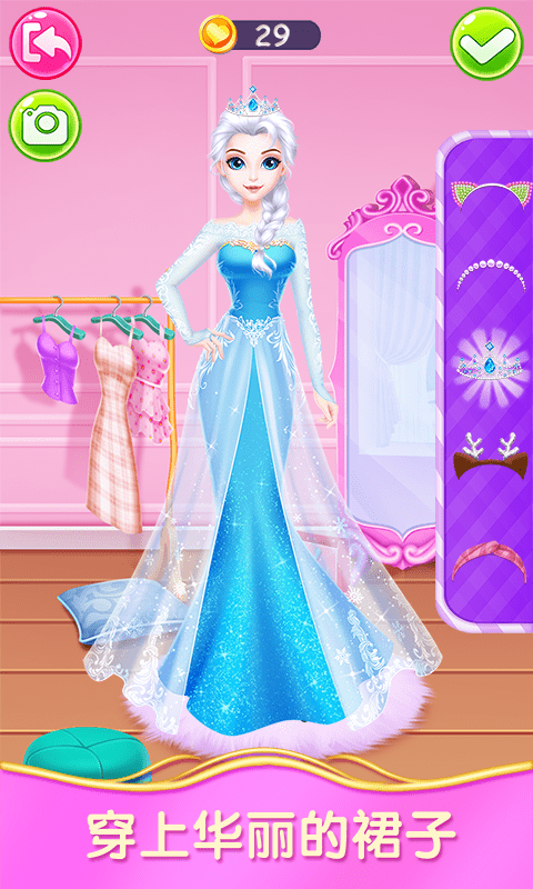 1、试衣间里华丽的服饰已然准备就绪,快来换上当下最流行的冰雪公主礼服,愉快地踏上通往女神的旅程吧!