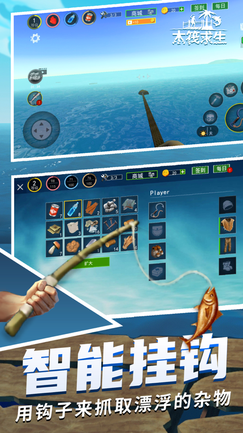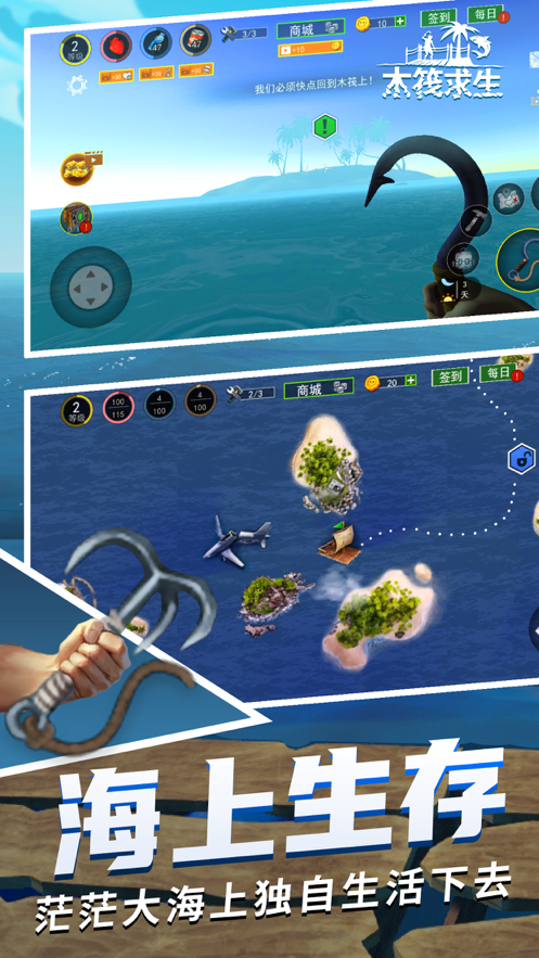 手游下载iOS是一款模拟真实海上求生游戏,经典的海上沙盒游戏玩法,你只有一艘小木筏,将会在海上利用各种方式来求得生存下去。在你求生过程中,不断发展自己,可以让你不断扩展你的小船,拥有更多资源和实力生存更久。