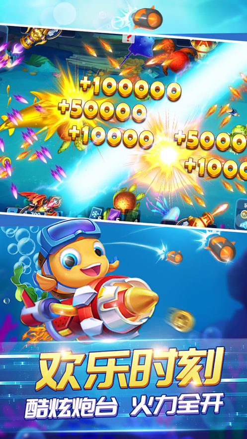 4、高倍炮无限反弹,发炮毫无顾虑,尽情开炮!变身黄金装,得分翻倍,捕获高分鱼种后,有一定概率化身黄金装,黄金鱼的分值将翻倍,若搭配50倍炮击中黄金鱼,得分将是原分值的十倍!