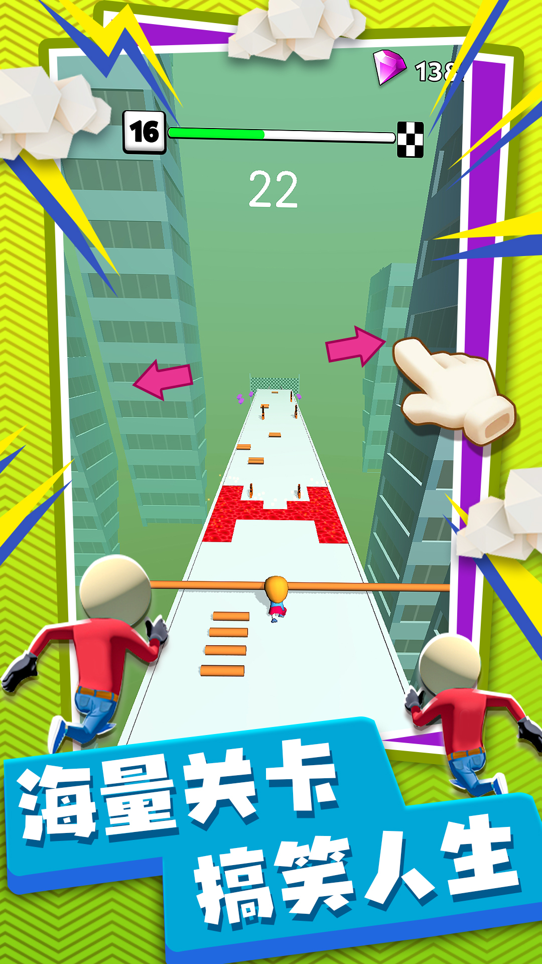 丰富的障碍物与机关等着您去挑战,灵活运用长杆以帮助您更快通关;