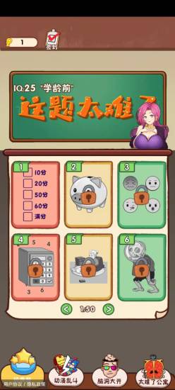 《这题太难了》是一款趣味横生的游戏,涵盖了丰富多样的关卡,带来如闪电般迅捷的答题体验,题目难度不一,诚邀您一同投身于轻松愉悦的答题之旅。答题越是频繁,智商便越高,随之而来的福利自然也愈加丰厚。