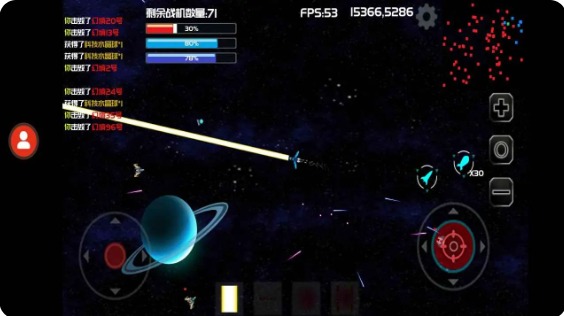 玩法简单,左侧摇杆操控方向,右侧进行攻击,中间则为换弹药,右上角可发射导弹。然而,摇杆的操作感较为生硬,玩家在操作时常常感觉不到战机的移动,有时甚至会出现原地挨打的情况,灵敏度不足影响了操作的流畅性,摇杆的反应如同卡壳一般,急需提升操作顺滑度。