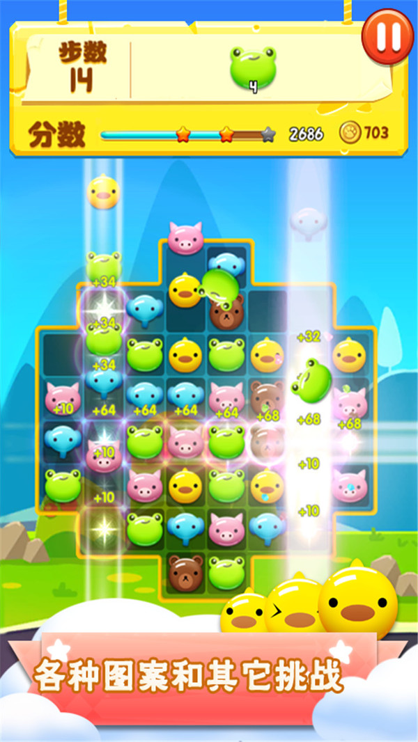 3、通过消除多个动物获得特殊方块,每种特殊方块都拥有独特的爆破效果。