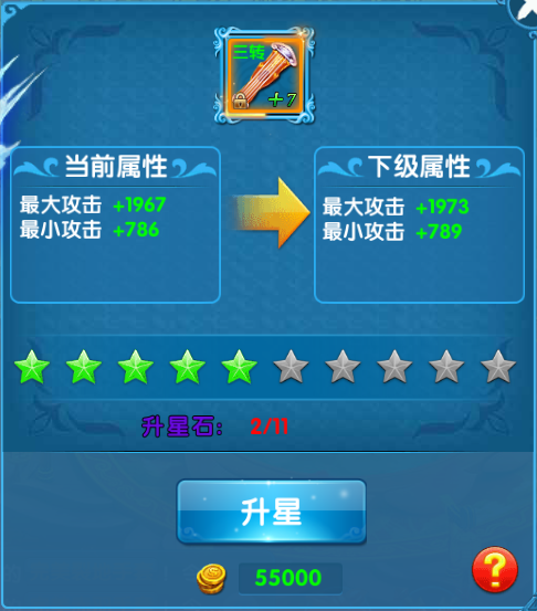 升星是提升玩家装备属性的另一途径,玩家可通过消耗升星石,来提升装备的星级,星级越高,所需消耗也愈大,然而升星过程必定成功。
