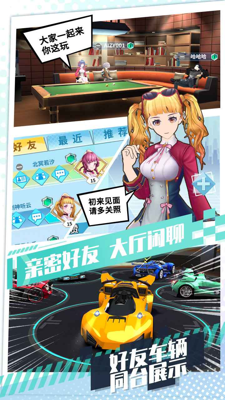1、玩家将帮助各类美女参与飞车乱斗,游戏中更可与其他玩家进行真实对抗。香车美女环绕,既有迷人的车模,又有激烈的赛车竞技。