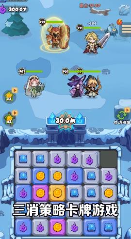 2、三消关卡:每次的挑战均以三消的形式展开,成功消除即能获得行动点数,英雄便可发动攻击;