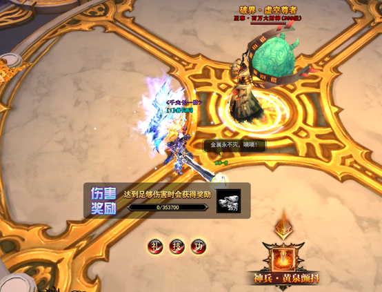 银两Boss每日会出现四次,每次持续五分钟。银两Boss开启后,玩家可前往财神送宝的地图参与击杀怪物的活动。玩家需攻击场地中的虚空尊者,以积累伤害值,达到指定阶段后便可获得相应的银两奖励。