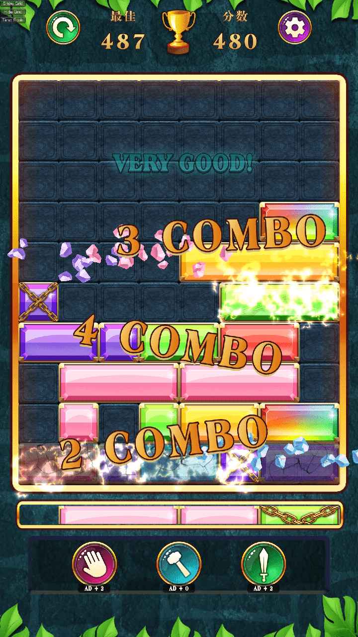这是一个宝石掉落移动游戏,它通过水平移动宝石块,让宝石块填充一行,达到消除得分的目的,它需要玩家观察,判断,移动,最终达成消除一行,或者多行.消除一个行就会得分,如果消除了多行会获得高分.如果玩家的宝石块到达了顶部,则游戏结束.这是个有趣的,有策略性的游戏.每个年龄段的人都可以玩。