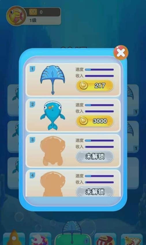 3、通过大鱼吃小鱼的玩法规则,寻找食物,不断地吃吃吃,慢慢的成长,解锁新的关卡挑战,游戏过程非常值得期待!