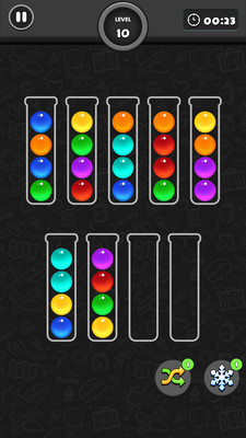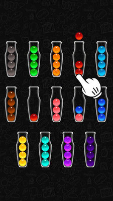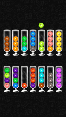 5、点击任意试管,将试管顶部的彩球移至另一试管。您的任务是将具有相同颜色球分类管的球放入一列。