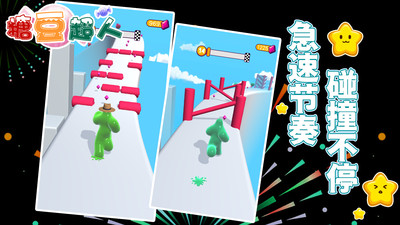 糖豆超人,一款跑酷,这里玩家将操控你的小人疯狂跑酷竞技,收集沿途的糖豆增大小人,各个障碍物躲避,以第一名的成绩冲向终点吧。