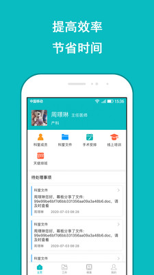 医省事涵盖了七大模块,包括科室成员、科室工作、病案管理、科室文件、天使排班、手术安排以及线上培训。