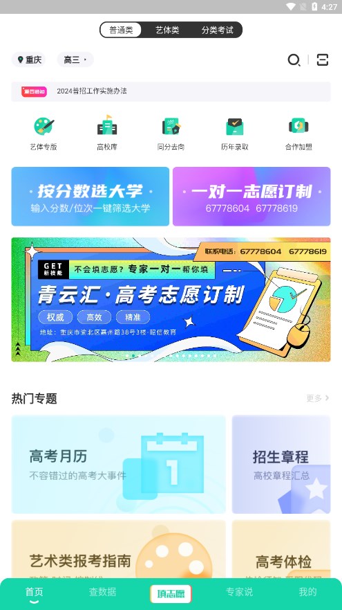 涵盖普通文理类、艺术类、自主招生、高职单招等招考政策;