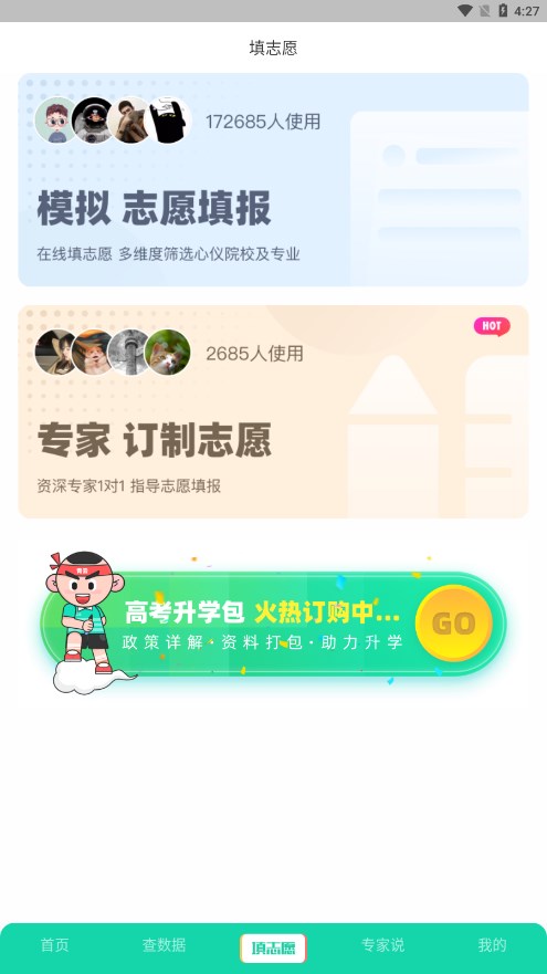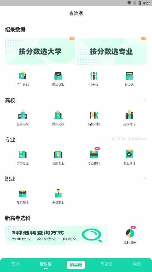 •大数据支持:2700余所高校信息、1400余个专业解析、近5年院校招生计划与录取信息