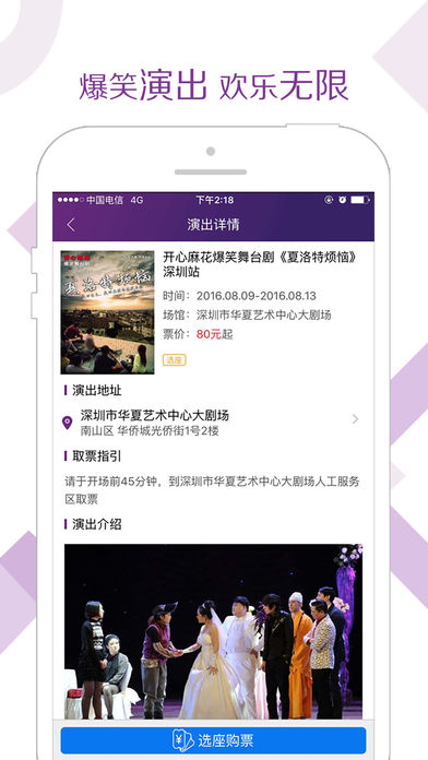 演出门票已陆续上线,目前已支持“开心麻花”演出的在线购票