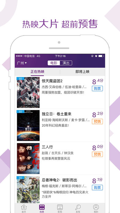 覆盖全国300多个城市,2000多家星级影院,实时查询放映时刻,提前预定,畅享无排队之乐