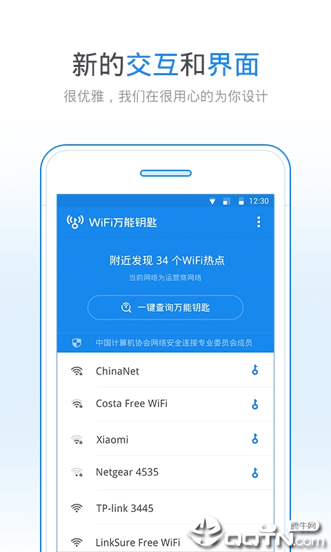 [便捷]一键查询附近的免费WiFi热点,安全连接更为便捷。内置中国移动CMCC、中国联通ChinaUnicom、中国电信ChinaNet等各大运营商的热点。