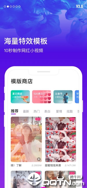 特效、网红快闪、唯美溶图、创意表白、趣味搞笑……海量视频模板供您自由选择~