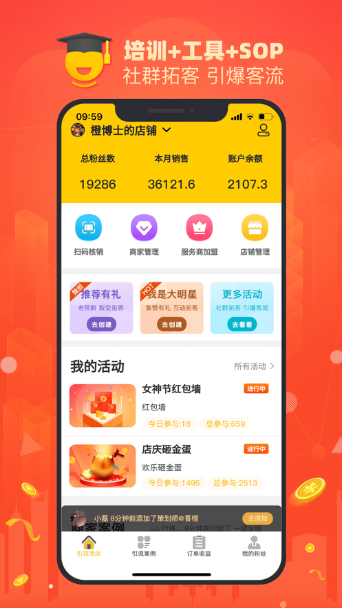 拥有15种裂变拓客工具,300多种社群拓客标准作业流程,以及1000多例门店社群运营实践,轻松点燃门店客流!