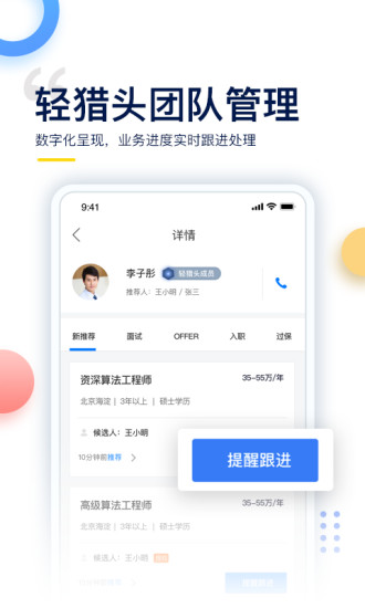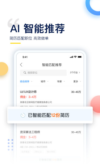 AI智能推荐引擎确保精准的人岗匹配,每一次交易所需时间减少超过80%,收益至少提升三倍,专业顾问团队全程赋能,即便是零基础的猎头也能轻松做单。