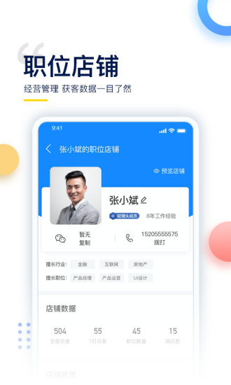 个人品牌的展示平台,精选优质职位供您展示,通过分享迅速获取候选人的职位意向,足不出户即可完成客户分析。