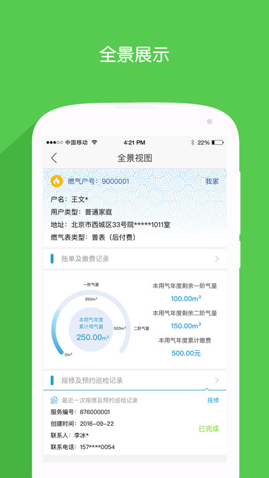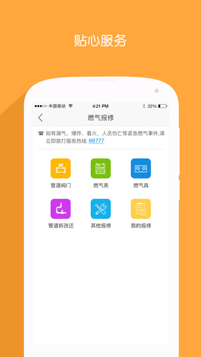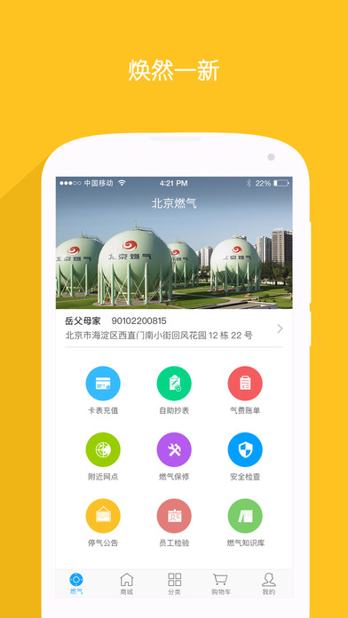 “北京燃气”APP涵盖了卡表充值、自助抄表、气费账单、燃气报修等九大实用功能。