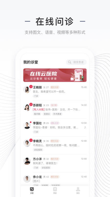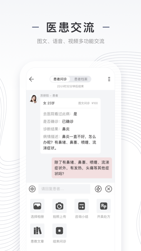 商赢互联网医院医生版APP,致力于医患间的高效沟通,提供图文、视频等多样化的交流方式;患者档案与健康信息一目了然,便于管理;个人中心清晰明了,服务设置简便快捷;支持多种互动形式,包括图文、语音及视频。