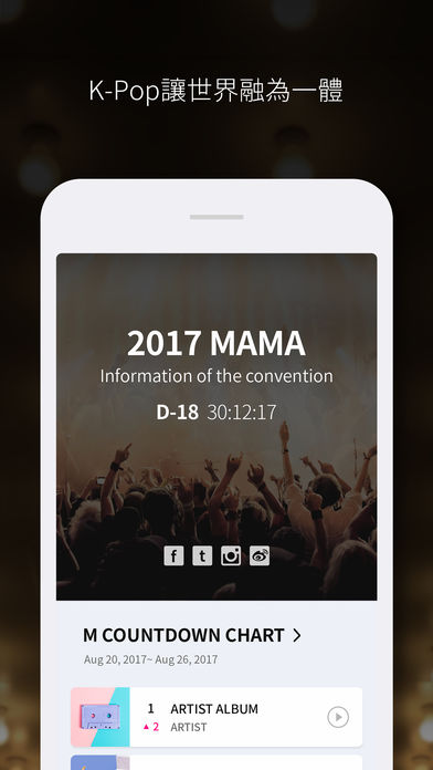 您还能参与全球最强K-Pop偶像排行榜节目的预投票及欣赏M COUNTDOWN的全球。