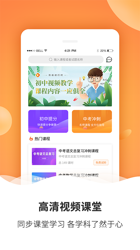 初中课程应用为初中生量身定制,是一款名师同步学习的通用平台。课程内容涵盖各学科在线学习,海量的智能辅导让孩子的学习更加高效。应用为您提供丰富的一线名师的同步教学视频以及最新的评测试卷与分析,助力学习之路更为顺畅!