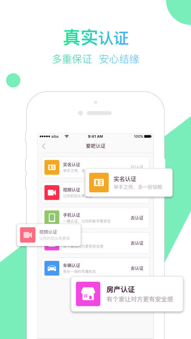 爱吧认证:爱吧是一款专为单身者设计的婚恋交友应用,增加认证便增添信任,让你在这里倍感安心~