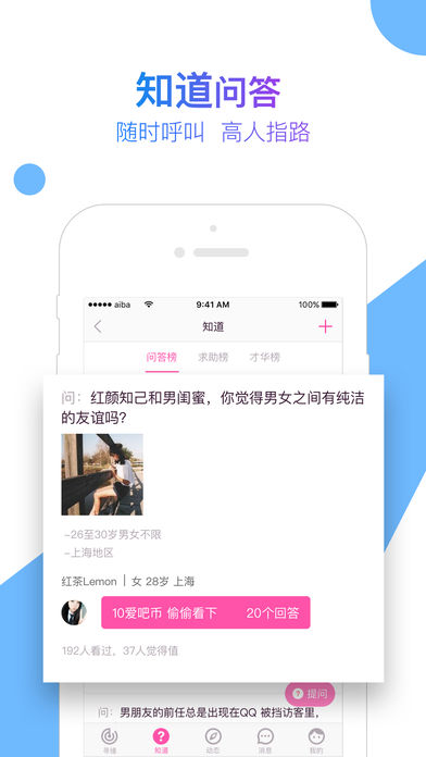 爱吧青春版app下载,独特的交友神器,这里汇聚了海量的单身会员,系统采用全实名制认证,确保网上交友的可靠与安全,快来下载体验吧。