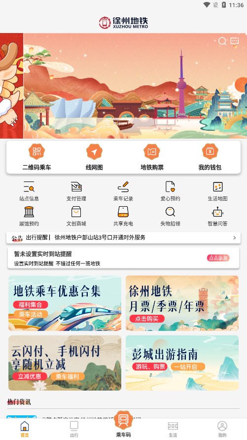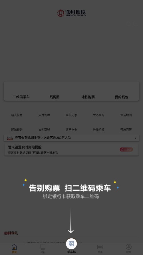 徐州地铁官方平台,为广大地铁乘客提供便捷的乘车服务。扫码出发,绿色智慧出行,助您畅享每一次旅程~