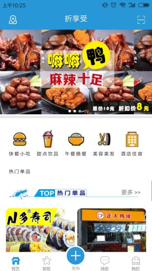 折享受app,一个能够看得见的折扣,专门为打折而制作的手机APP,购物消费享受超低折扣价,隔离快餐小吃、甜点饮品、午餐晚餐、美发、酒店住宿在这里都能看见折扣哦!