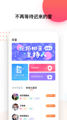 【亲友团助攻】用户可在视频相亲过程中邀请亲友团为自己的视频相亲助攻。亲友团可通过助攻端口在线同步观看其亲友的视频相亲过程,并及时给予相关建议、指导,帮助亲友把关,为亲友在视频相亲中对另一半的选择提供参考意见。
