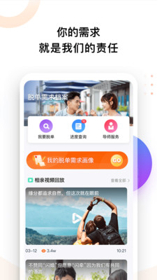 【脱单需求档案】脱单需求档案功能包括脱单需求画像、脱单需求、服务进度查询、平台为用户提供的脱单服务方案详情等内容,该功能详细了用户脱单路上的全过程。