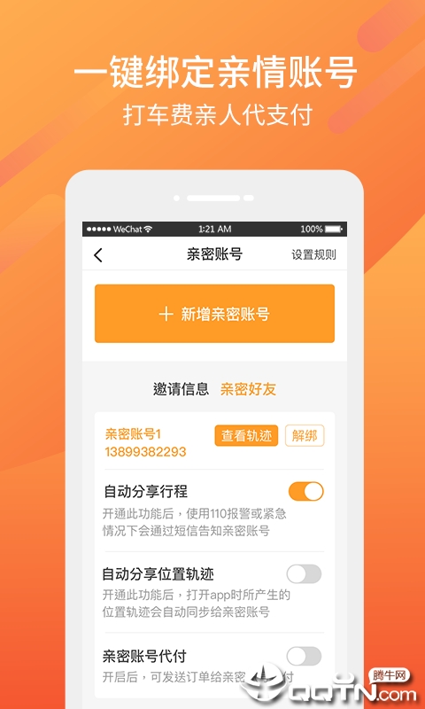 绑定子女东风出行亲密账号,老人打车订单代支付。